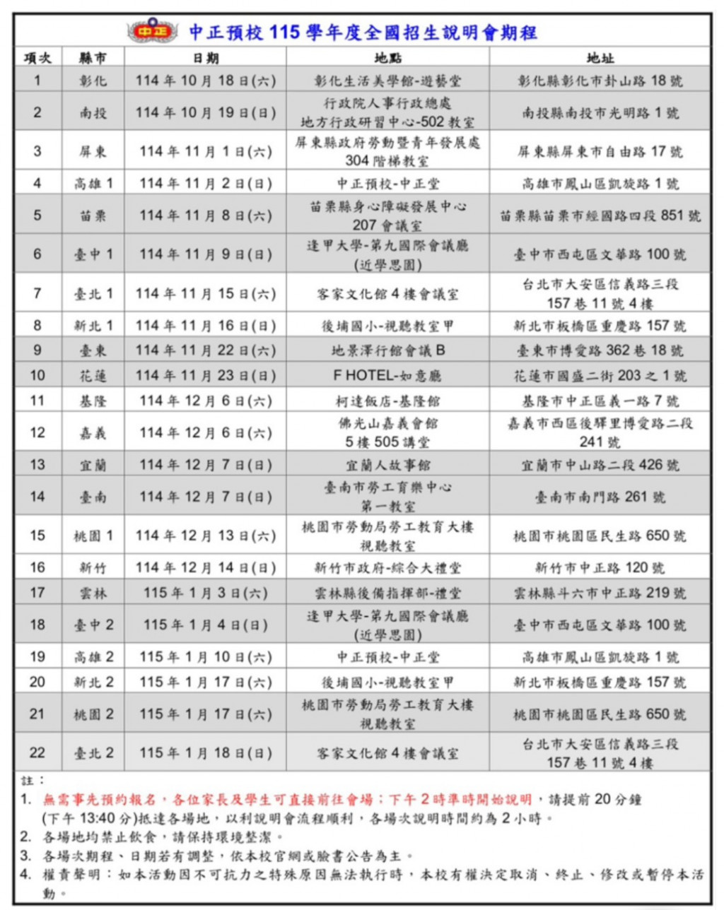 【轉知】中正預校招生說明會,詳情參閱說明、附件。