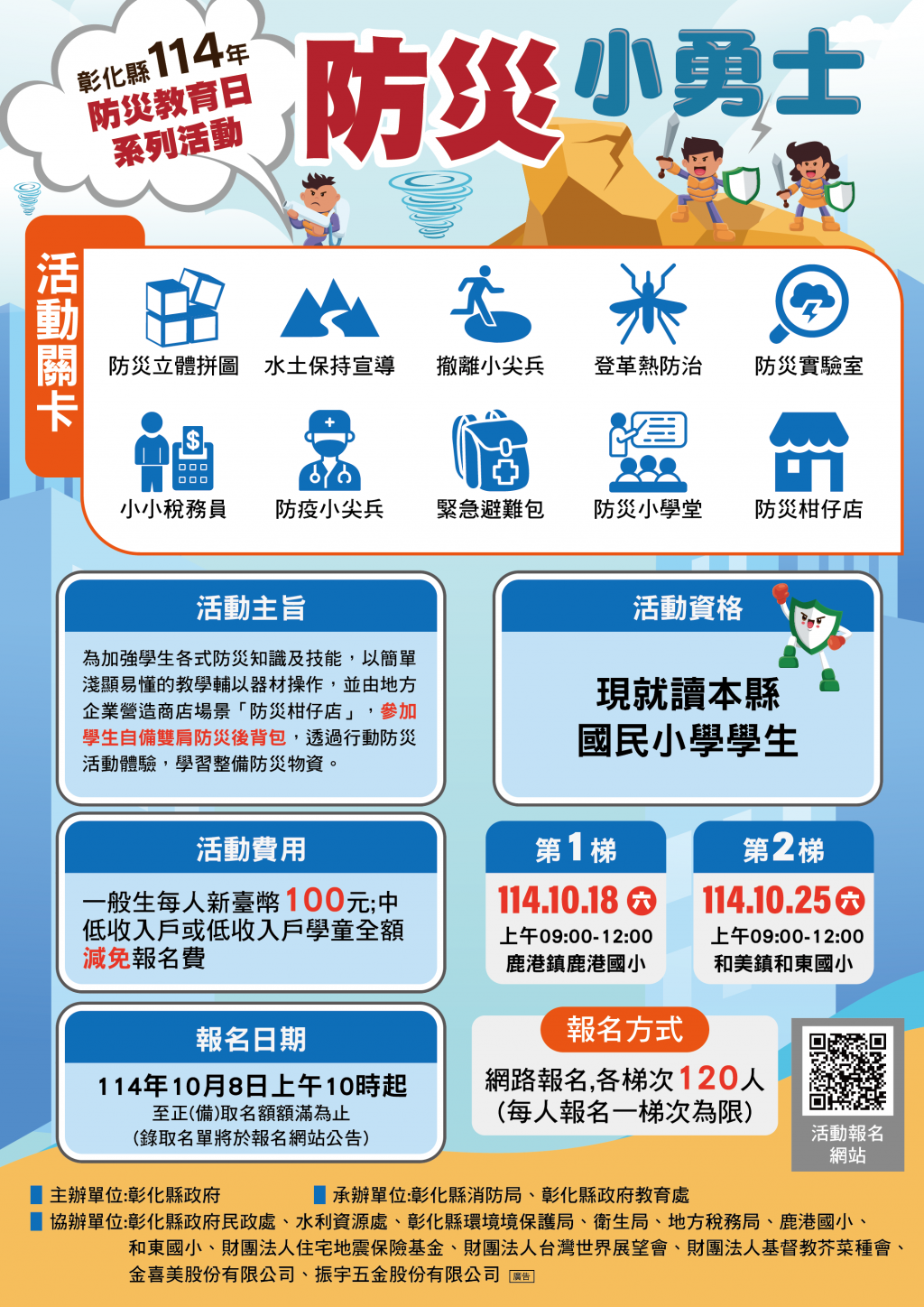 2、第2場次:114年10月25日(星期六)上午9時至12時,和美鎮和東國民小學。